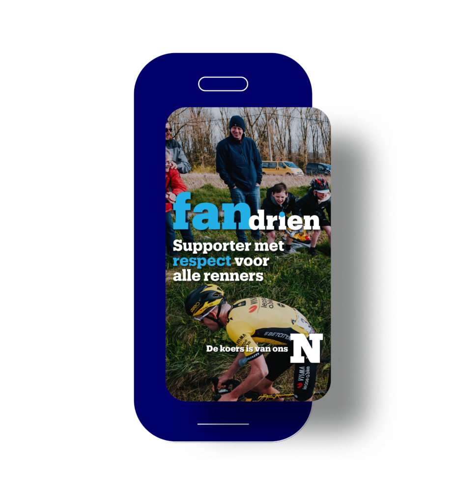 “Supporter met respect voor alle renners”. Dat is de baseline van de voorjaaractie van het Nieuwsblad, de Fandrien, die met de Omloop Nieuwsblad het Vlaamse wielervoorjaar op gang trapt. Design studio zorgde voor passende ontwerpen om de actie te ondersteunen.